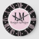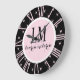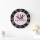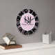Black & Pink Bow Monogram Large Clock