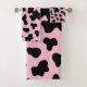 Black & Pink Cow Cowhide Print Bath Towel Set