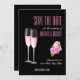 Feminine beautiful design combines elegant black background with amazing modern typography and pink flowers as well as champagne glasses. Save The Date card for your wedding is important and you deserve the best one. This elegant and luxurious design will be perfect.