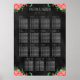 © Sunny Mars Designs - Floral Hibiscus: Pink on Chalkboard Wedding Seating Charts for 15 Tables - Customizable, modern, elegant, classy, trendy, chic, formal custom printed black chalkboard wedding table seating charts template with beautiful swirly floral tropical hibiscus design against a blackboard or chalk board background. For fifteen tables.