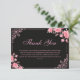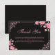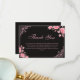 This thank you card features soft pink flowers on a deep black background, creating a warm and stylish look that matches the black and pink floral wedding suite. The floral artwork adds a gentle touch, making it a lovely way to thank your guests after your celebration. The clean design gives space for a thoughtful message while keeping the overall look modern and coordinated. It’s a beautiful finishing piece for a black and pink floral wedding stationery set.