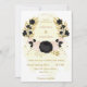 Romantic black & pink flowers with gold leaves botanical wedding invitation