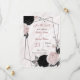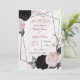 black and soft pink flowers grey leaves on a marble background geometric save the date invitation