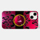 BLACK PINK FUCHSIA DAMASK MONOGRAM,Ruby Gemstone Case-Mate iPhone Case