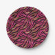 Black Pink Gold Zebra Stripes Animal Print Pattern Paper Plate