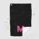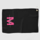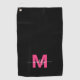 Create Your Own Personalised Custom Black Modern Script Name Monogram Golf Towel. This chic, feminine golf towel features a stylish monogram design with a flat magenta or hot pink initial on a sleek black background and a classic black script name for a personalised touch. Printed on one side, this towel adds a unique and elegant flair to any golf bag. It makes a fun and sophisticated gift, perfect for birthdays, holidays, Mother’s Day, or any special occasion when you want to celebrate someone—or treat yourself! Ideal for the golf lover who enjoys a blend of style and personalisation while staying practical on the course.