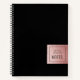 Rose Gold Pink and Black classic minimalist personalised notebook with a professional-looking small font name and date to one side of the font cover.