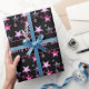 Black Pink Purple Christmas Stars Pattern Add Text Wrapping Paper