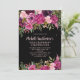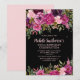 Elegant black 100th birthday party invitation with pink and purple watercolor floral and gold glitter. Contact me for help with customisation or to request matching or coordinating Zazzle products for your party.