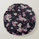 Black Pink Sakura Flowers, Pattern Design, Round Cushion