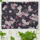 Black Pink Sakura Flowers, Pattern Design, Tea Towel
