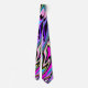 Here's a vivid and colourful abstract design tie that will definitely be noticed! Colours include purple, lime green, blue, violet, pink, and black, all descending in a unique pattern down the length of the tie. Bright!