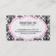 Elegant black pink and white vintage ornate floral damasks. Cool beauty industry business card. Available on other products.