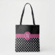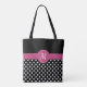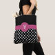 Black Pink White Monogram Polka Dots Tote Bag