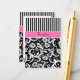 This modern and chic pink, black, and white striped floral damask reception enclosure card matches the wedding invitation shown below. You can also use it as a map or directions card or wedding information card by changing the text accordingly. ****PLEASE NOTE that everything will print as you see it on your monitor. I will not see your product and Zazzle will NOT edit anything for typos, alignment etc., so please make sure all your text is centred and error-free. If you need assistance, please email me BEFORE you place your order. If you require any matching items, please email your request to niteowlstudio@gmail.com.