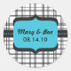 Black Plaid and Blue Wedding Monogram. This wedding sticker displaying your new married name/initials can be used for cake or favour boxes, candy bags, travelling guest goodie bags and much more!