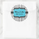 Black Plaid and Blue Wedding Monogram Classic Round Sticker
