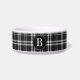 black Plaid chic preppy white stripes modern trendy monogram initial personalised dog bowl and cat bowl pet dish