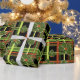 This Christmas wrapping paper of black background with a red and green plaid has hand painted holly berries bunches scattered on top for a festive design that will look lovely under any Christmas tree. You can make the pattern smaller or bigger on this gift wrap.