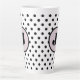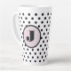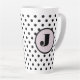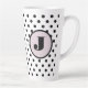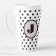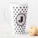 This latte mug features a pattern of black dots on a white background with a framed custom monogram on a pale pink background. Click Personalise this Template to easily personalise the monogram and further customise the colours, font and add additional text, if desired.
