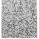 Graphic design of large and small black polka dots on a white background.