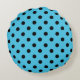 Black Polka Dots on Aqua Blue Round Throw Pillow