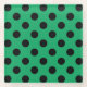 Black polka dots on fresh green glass coaster
