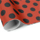 Black polka dots on red wrapping paper