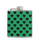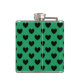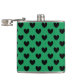 Black polka hearts on Kelly green Hip Flask