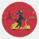 Black Poodle in Paris on Scooter Classic Round Sticker