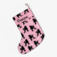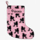 Cute Black Poodles Pattern with Bows and Hearts on Delicate Swirl Pattern and a Custom Name Soft Pink Background Christmas Stocking.