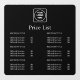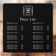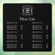 Present your services with style using this black price list window decal. Perfect for salons, cafés, retail shops, and offices, this custom storefront signage can be personalised with your business logo and details. Its minimalist modern design makes it easy to read, while the durable material ensures long-lasting use. A sleek way to display prices and promote your brand at the same time.