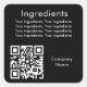 Black product ingredient listing qr code label
