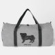 Black Pug Cute Cartoon Dog With Custom Name Grey Duffle Bag