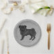 Black Pug Dog Breed Cute Cartoon Illustration Grey Paper Plate