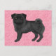 Black Pug Dog Cartoon Mops Love Heart Pattern Pink Postcard