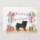 Black Pug Dog Colourful Pastel Birthday Balloons Postcard