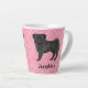 Black Pug Dog Cute Mops And Pink Hearts With Name Latte Mug