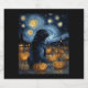 Black Pug dog of van gogh starry night halloween F Sparkling Wine Label