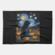 Black Pug dog of van gogh starry night halloween F Tea Towel