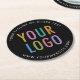 Personalise our round pulpboard paper coasters with your business logo and custom text. These are 50 point pulpboard featuring curved text with a simple minimalist design. Designed in black and other colours (all colours are customisable). The size is 4 inch x 4 inch and sold in sets of 6. Available in other fun shapes. Low minimum order quantity and no setup fee.