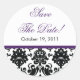 Our black damask with an Purple accent wedding stickers are the Perfect finishing touch for your wedding invitations, thank you notes, save the date announcement cards or bridal shower favours. Matching items available in our shop @ www.celebrateitweddings.com. This item is available in a variety of colour combinations!