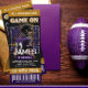 DIGITAL DOWNLOAD AVAILABLE. Get ready to kick off an epic birthday bash with this Purple and Gold football-themed invitation! Perfect for Baltimore fans who bleed purple and live for game-day energy, this invite features a bold football player in a striking purple and black uniform, ready to score a touchdown at your celebration. Ideal for tailgate-style parties or watch party gatherings, this design captures the heart of Baltimore football pride. Customize it for any age and make your birthday a winning play!