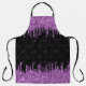 Black purple glitter drips monogram initials apron