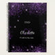 Black background, white and purple text. Decorated with purple faux glitter dust. Personalise and add your first name, monogram initials, full name and year.