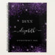 Black background, white text. Decorated with purple faux sparkles. Personalize and add a year, your first name and a title. The name is written with a modern hand lettered style script with swashes.