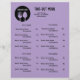 This eye-catching Restaurant Take-Out Menu flyer features a vibrant purple background, creating a fresh and artistic vibe that instantly draws attention. The soft black font blend calming purple evoking both sophistication and warmth—perfect for modern eateries or cosy cafés.
