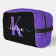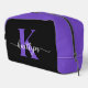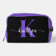 This simple, elegant black toiletry bag with your first name in a trendy script font in white and your first initial in a modern cap font in purple is perfect for you. It's stylish and trendy and yet very classic. It will be fabulous for school, the gym, work, your car - will make keeping your makeup or toiletries all in one place when you're away from home.