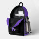 This simple, elegant black backpack with your first name in a trendy script font in white and your first initial in a modern cap font in purple is perfect for you. It's stylish and trendy and yet very classic. It will be fabulous for school, the gym, outings, hikes, shopping, biking, etc.