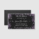 A trendy wedding Save the Date magnet. A stylish black background. Decorated with purple, lavender coloured faux glitter sparkles. Personalise and add a date, place and your names. Save the Date is written with a modern hand lettered style script with swashes.